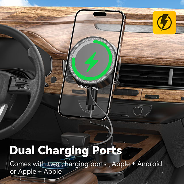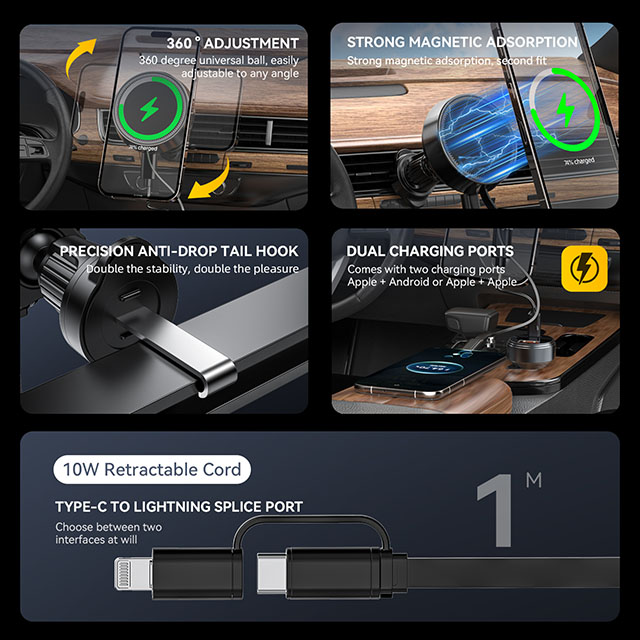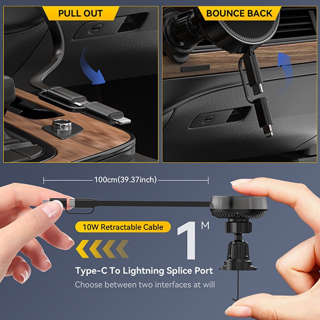 ★ Charge Two Devices at Once (Wireless + Retractable Cable)